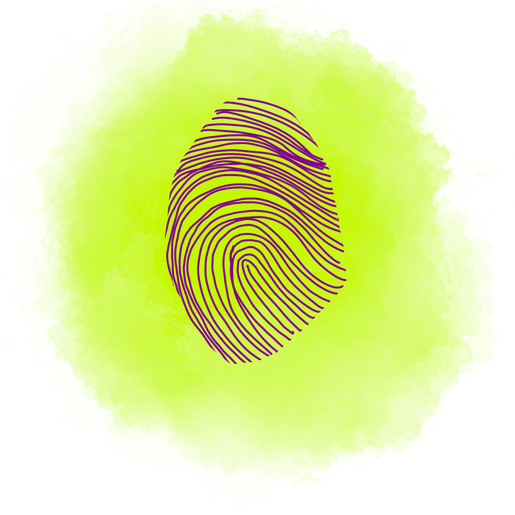 as humans, with an illustrated pattern of fingerprints as its main feature.